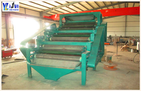 1、多級磁輥,除鐵效果更好可以做成磁滾筒與磁輥串聯,或者多級強磁輥串聯。不僅增加了弱磁性礦物在磁場的作用次數,翻動、梯度式磁場更增強了選別效果,大大增加了除凈率。